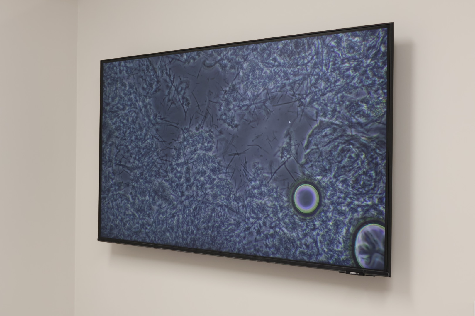The sample is placed under our Motic Europe phase contrast microscope, and we view the microorganisms in real time.